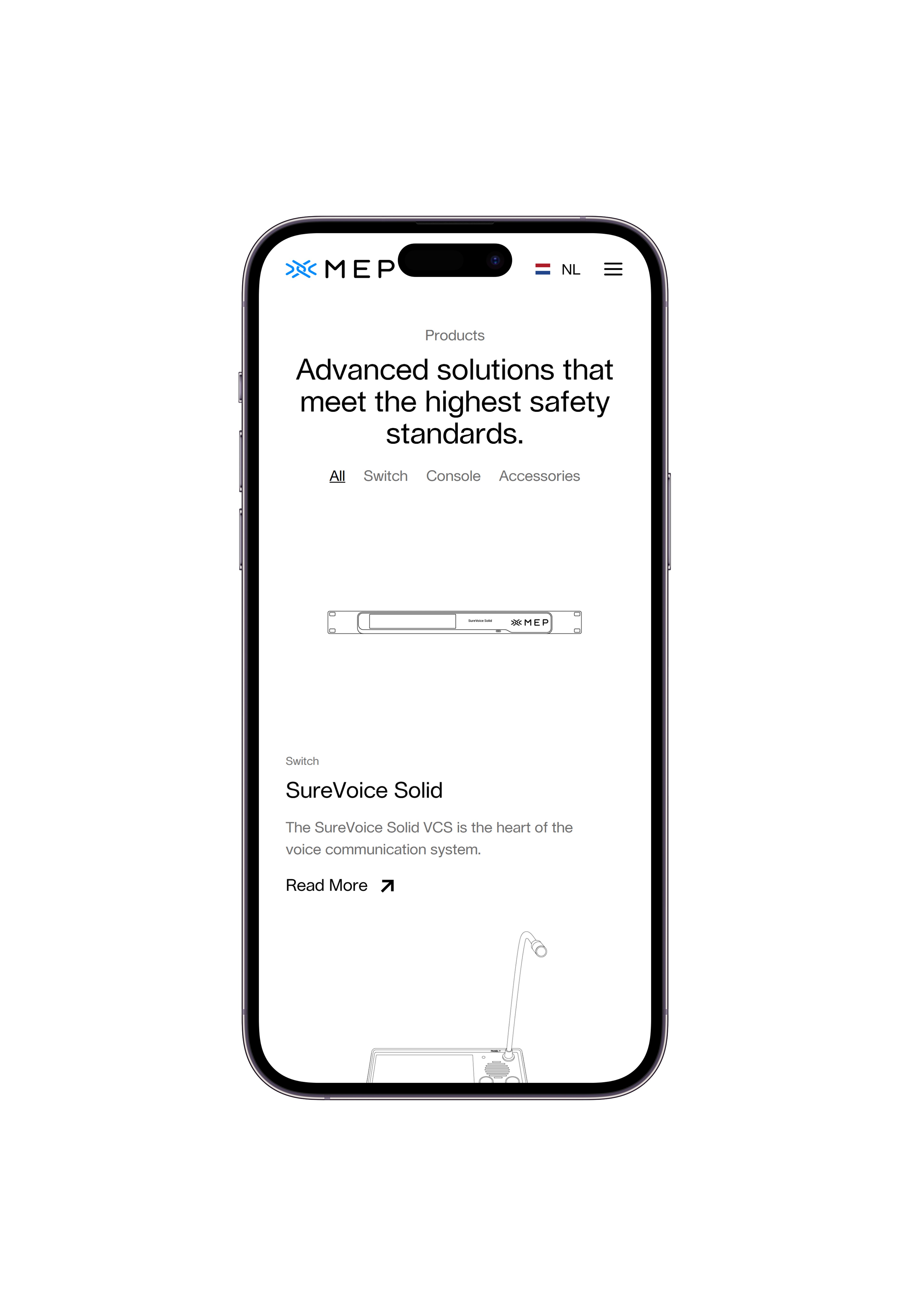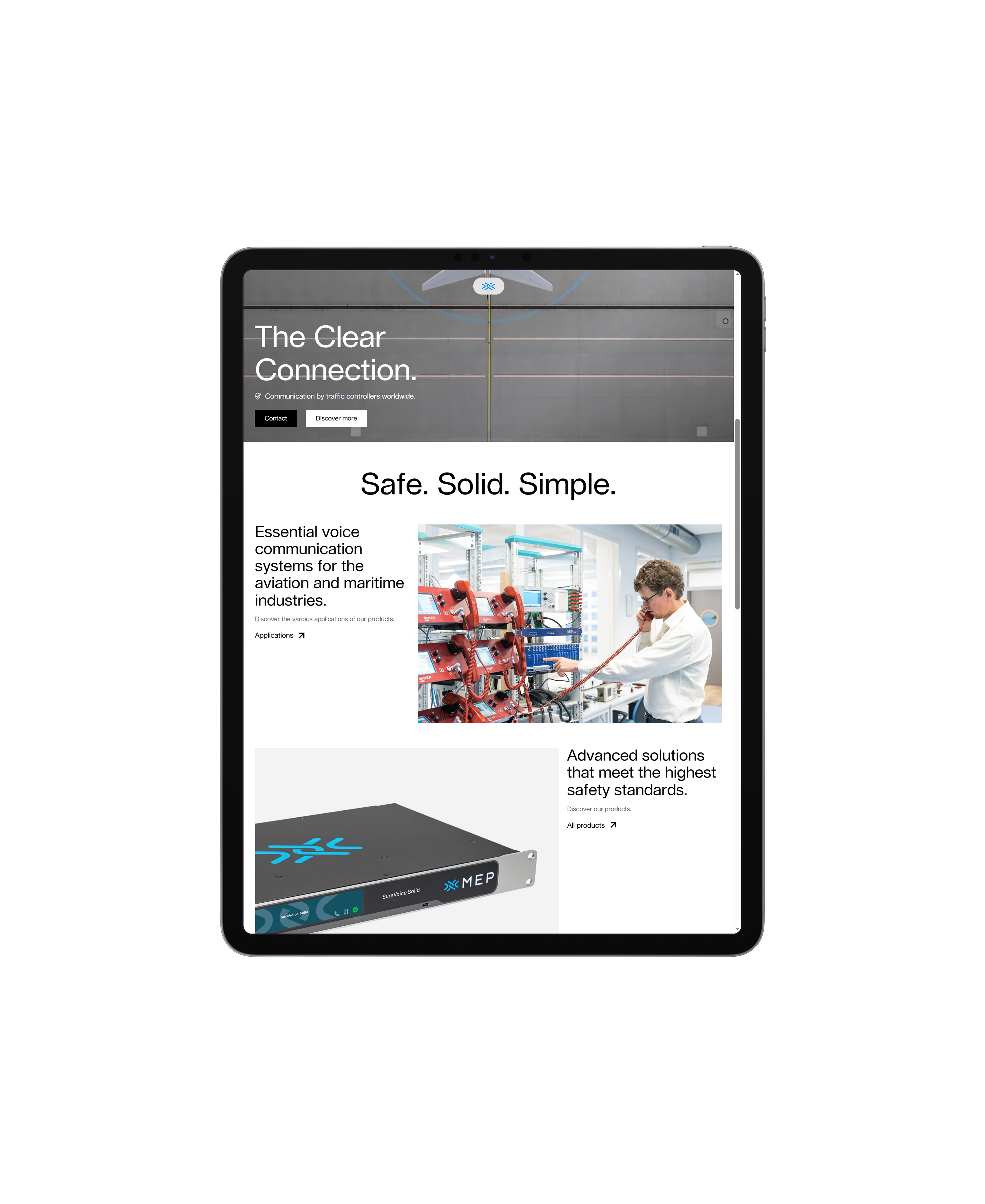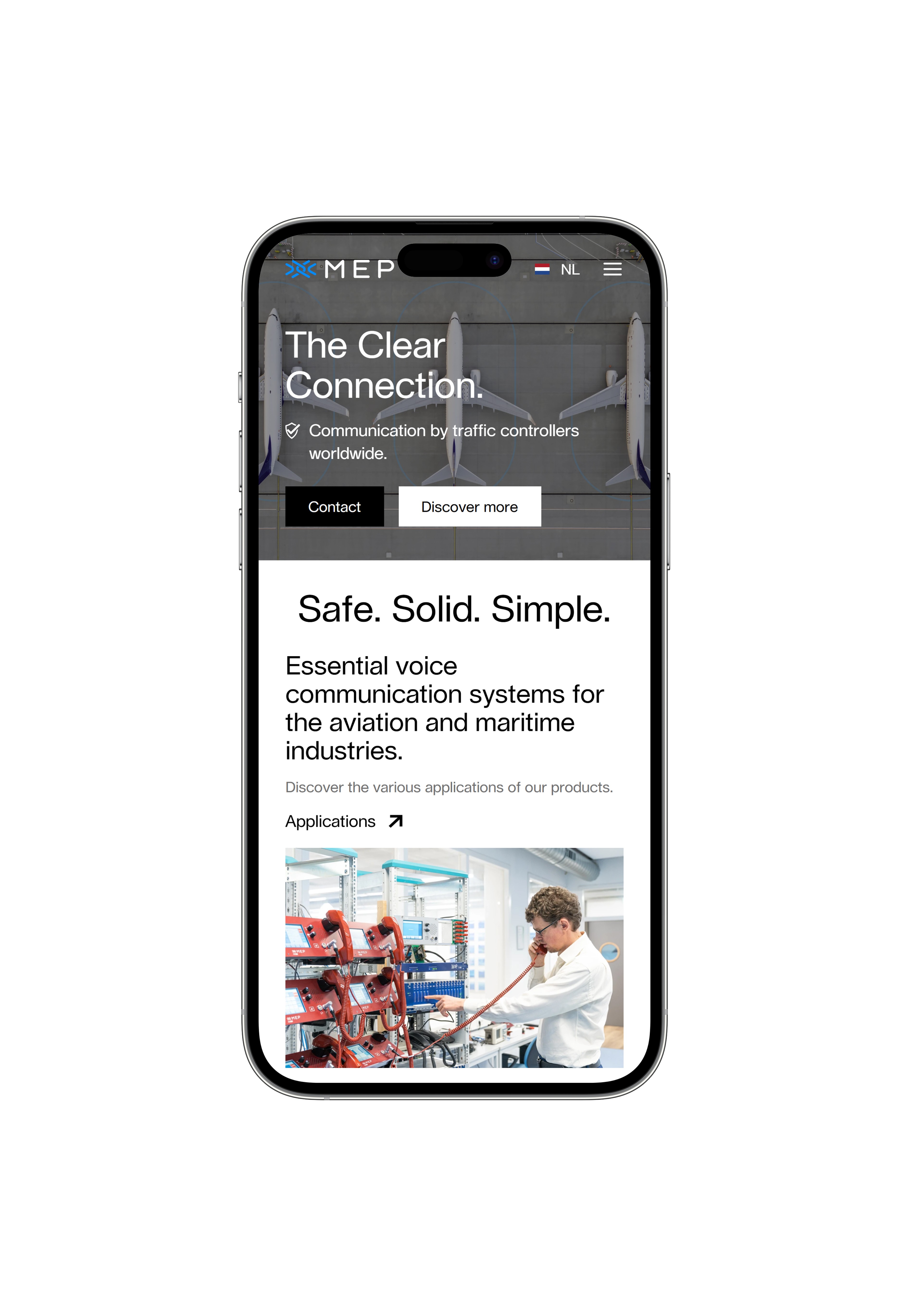 De nieuwe visuele identiteit van MEP draait om drie kernwaarden: Safe. Solid. Simple. Dit moest niet alleen in de branding terugkomen, maar ook in het webdesign. De stijl is strak, rustig en zonder overbodige afleiding – precies wat past bij het imago van MEP.