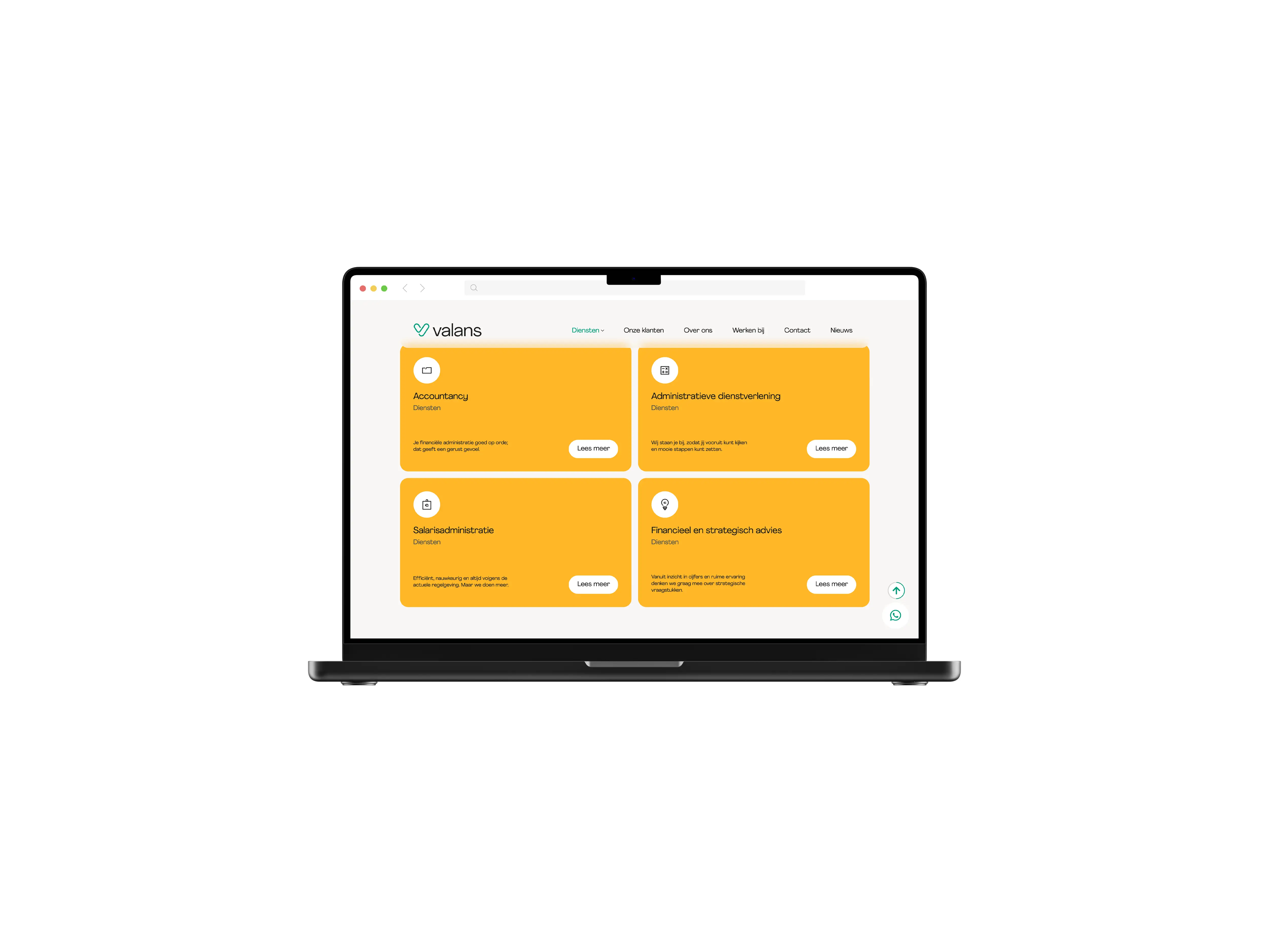 De website is ontworpen met de gebruiker in gedachten. Of een ondernemer nu op zoek is naar advies, een specifieke dienst wil afnemen of simpelweg meer wil weten over Valans, de informatie is altijd binnen handbereik. De site is volledig responsive, zodat hij zowel op desktop als mobiel prettig werkt.