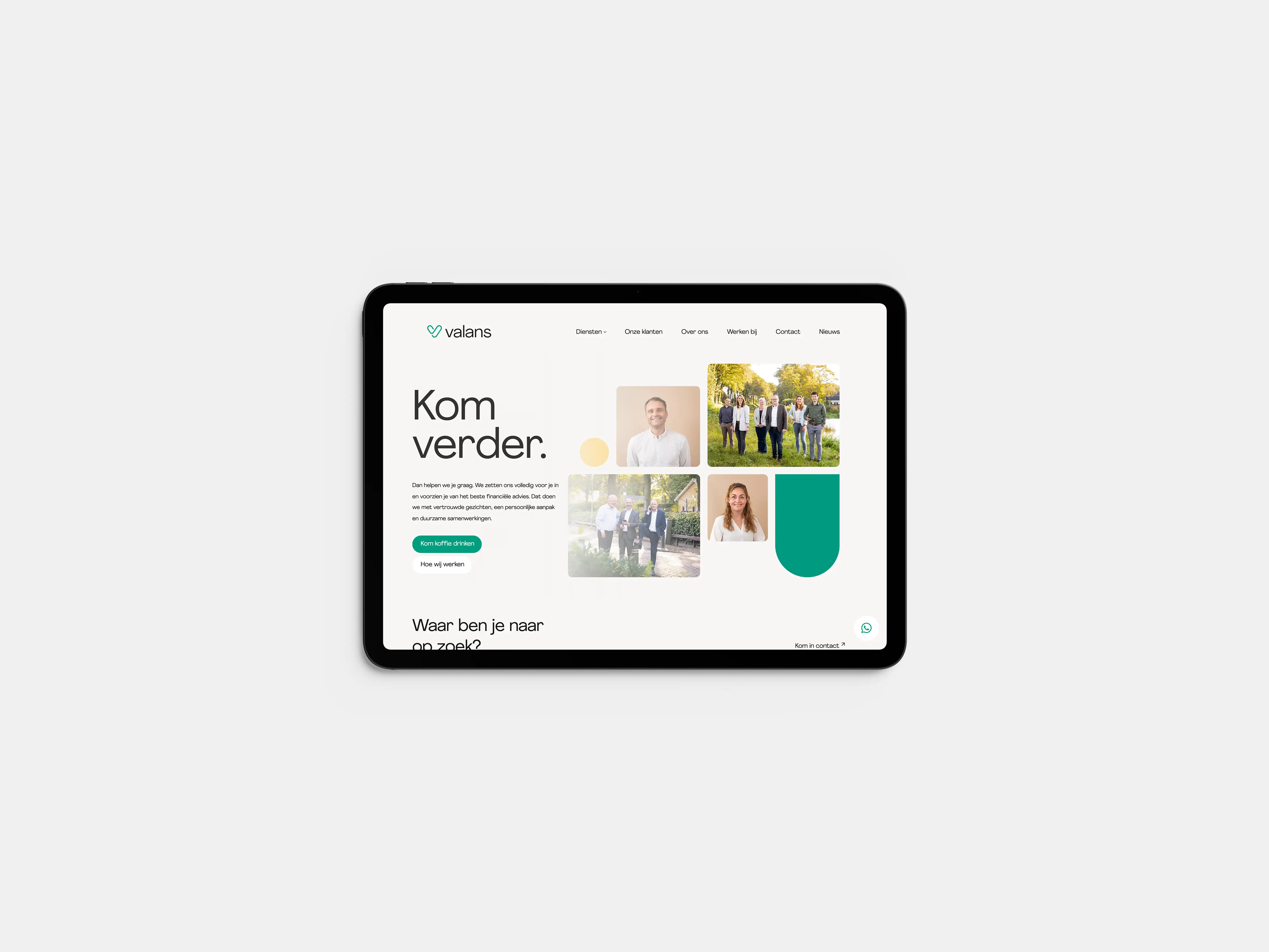 Valans gelooft dat ondernemers het verst komen met een financieel adviseur die écht luistert en meedenkt. Dit heb ik vertaald naar een heldere en overzichtelijke website, waarbij de persoonlijke aanpak en het team centraal staan. De opzet is clean en doordacht, met subtiele accenten die de kernwaarden van Valans ondersteunen.