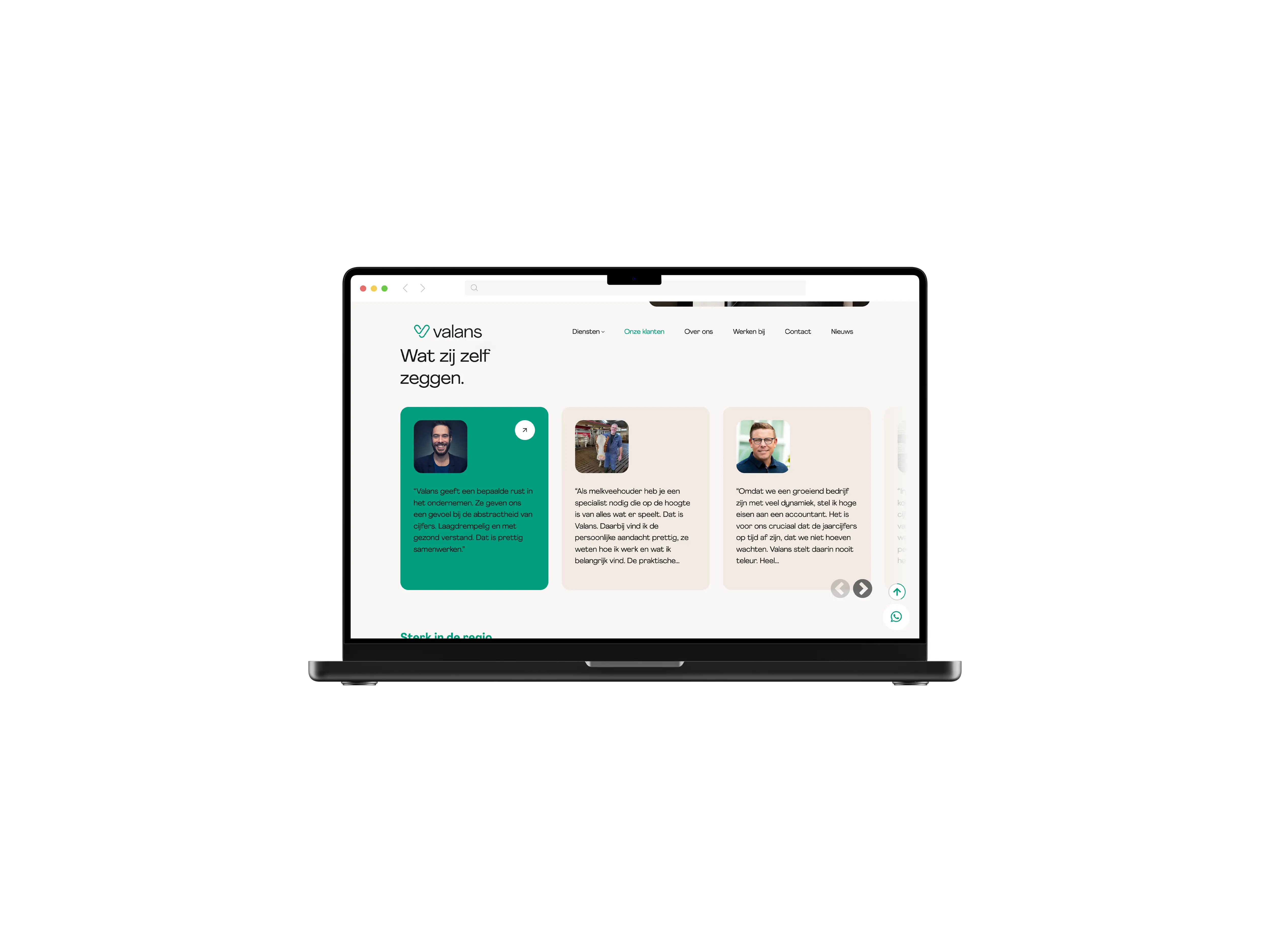 Ondernemers hebben behoefte aan duidelijke, snelle en betrouwbare informatie. Daarom biedt de website niet alleen een overzicht van de diensten, maar ook een laagdrempelige manier om contact op te nemen. De structuur zorgt ervoor dat klanten snel de juiste adviseur kunnen vinden, en de persoonlijke aanpak van Valans wordt versterkt door de prominente teampagina.