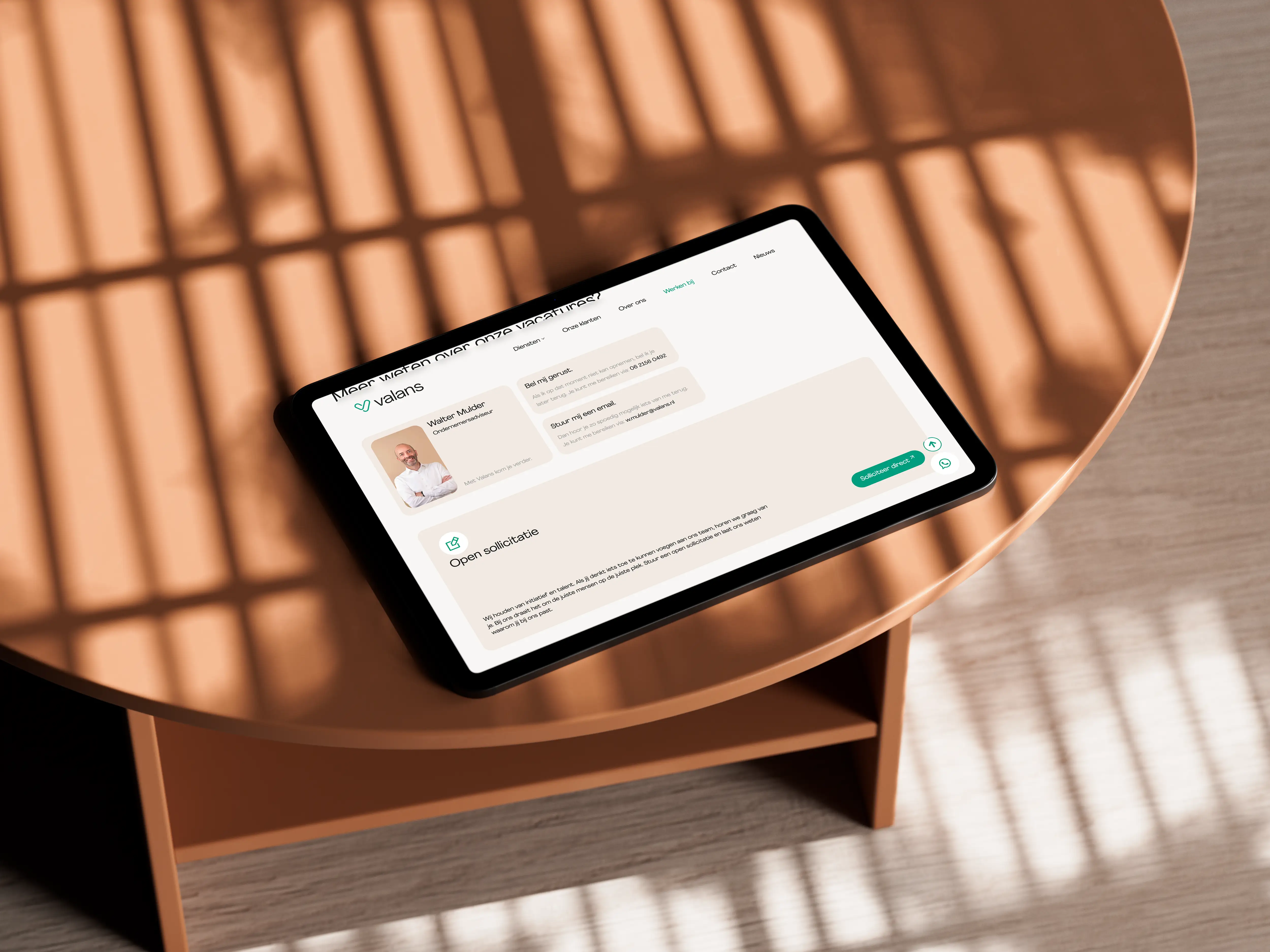 Voor Valans heb ik de website ontworpen met een focus op betrouwbaarheid, toegankelijkheid en een persoonlijke benadering. Valans staat voor duurzame samenwerkingen en vertrouwde gezichten, en dat moest in het ontwerp terugkomen. De website straalt rust en professionaliteit uit, terwijl de gebruikerservaring intuïtief en efficiënt blijft.
